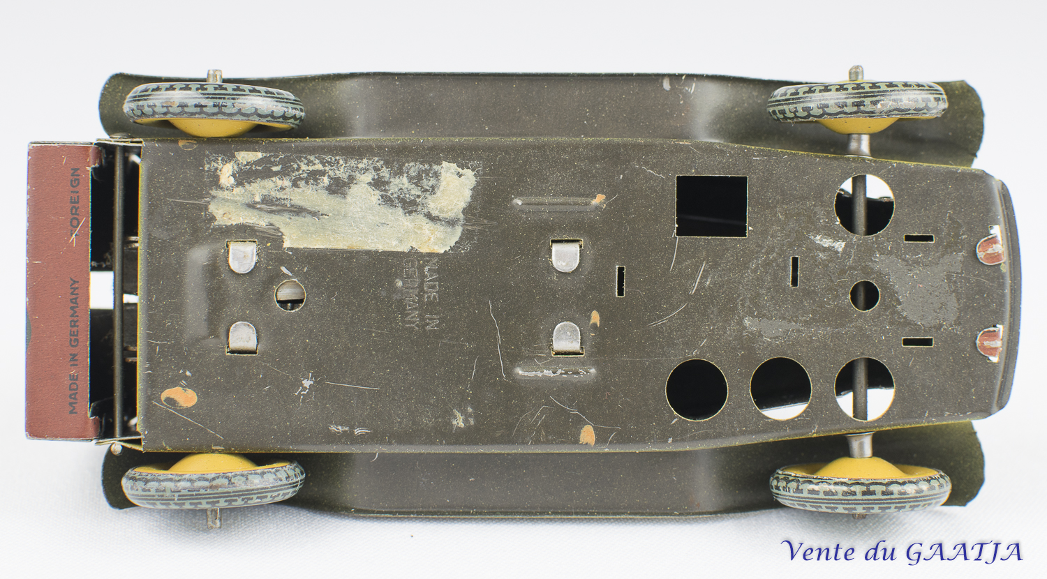 fabrication Japonaise des années 1940, en tôle. 14 cm. Pas de clé. Fonctionne, bon état d'usage 55 Eur. + frais d'expédition (Tarif C) Réf. "JM35" Réservé |