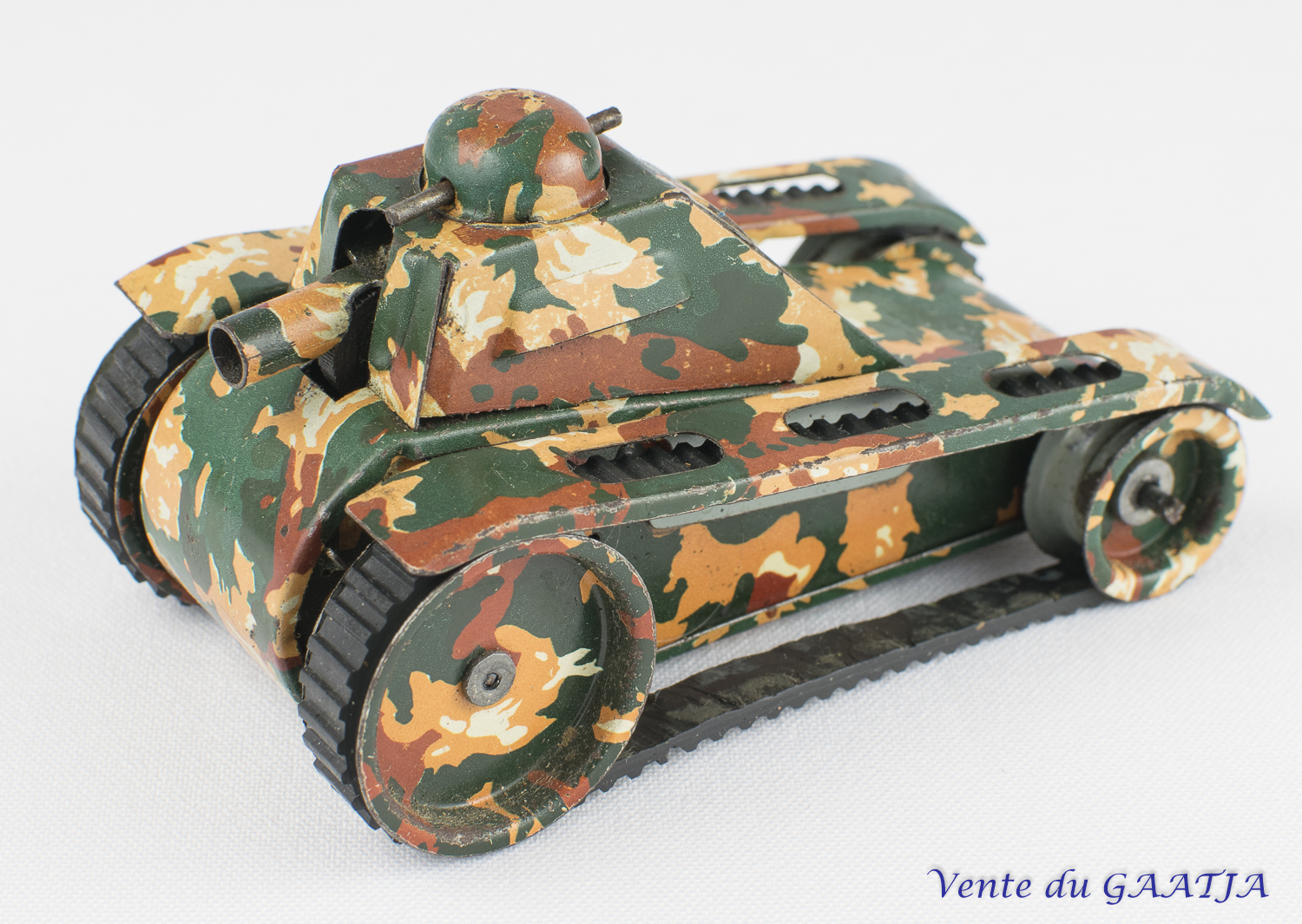 ![]() ![]() | Char à chenilles métaliques, mécanique, motif camouflage Bon fonctionnement et excellent état. 10 cm Pas de clé 43 Eur. + frais d'expédition (Tarif B) Réf. "JM12" |